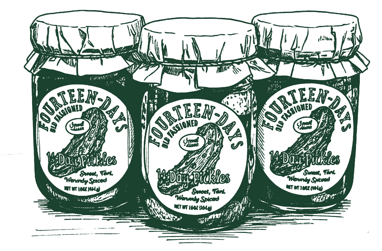 Fourteen Days is a small-batch pickle company built on a family recipe and a little patience. Every jar takes two weeks from start to finish—time that lets the flavors settle, deepen, and find their perfect balance of sweet, tart, and spice.